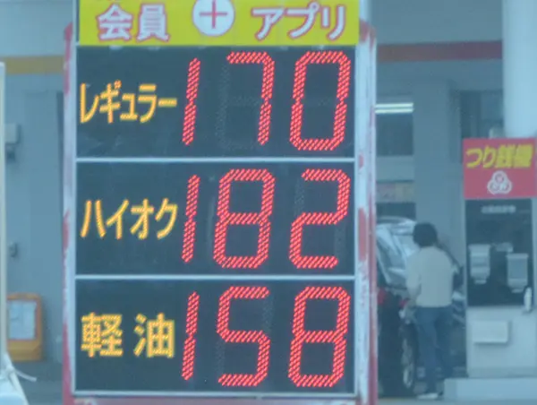 レギュラーガソリンの価格が1l当たり200円に迫る勢いだったが、政府が19日から石油元売り各社に補助金を出したことで、給油所ごとの仕入れ状況や在庫のタイミングで価格に反映されている。