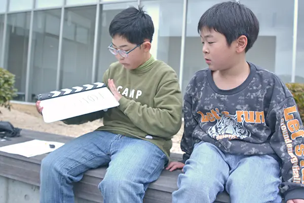 今回はふたりが準備した脚本を基に、参加者と一緒に物語を膨らませるところから始めた。別々の小学校に通うため初対面だったが、すぐに打ち解けた子どもたち。幼いながらもそれぞれの自由な発想がスパイスとなり、同館や隣接する平中央公園で実際の撮影につなげた。