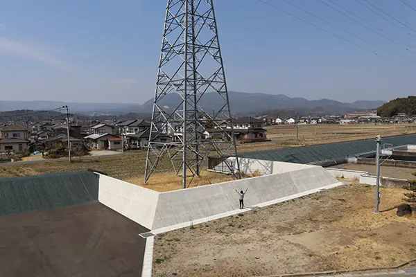浸水対策工事にあたっては、深さ2mの浸水にも耐えられるよう、約2・1~2・4mのコンクリートによる擁壁と、盛り土による築堤を行い、施設全体を囲むように整備した。