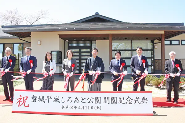 平字旧城跡の磐城平城本丸跡地で11日、「磐城平城しろあと公園」が供用を開始した。初日は記念式典が催され、園内の体験学習施設の愛称が御殿にあった茶室にちなんで「緑天庵」と発表された。