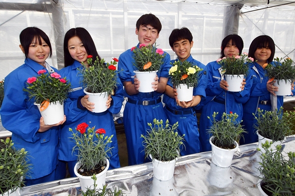 同科の生徒たちは草花や野菜、果樹、植物バイオテクノロジーなど幅広い分野で学びを深めており、カーネーションの販売はシクラメンと並んで同校の恒例行事として人気を集めている。