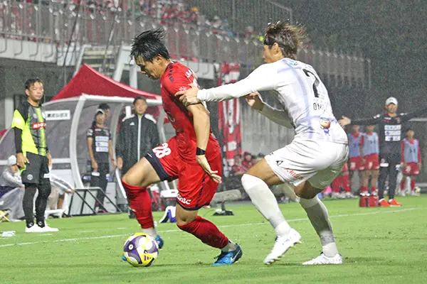 いわきは時折強く降る雨の中、序盤は互角の戦いだったが、ラインを高く維持することで徐々に主導権を握る展開に。セカンドボールをうまく拾い、90分を通してたびたび好機に恵まれたが、惜しくもゴールネットを揺らすことはできず、勝ち点1を分け合うドロー決着となった。