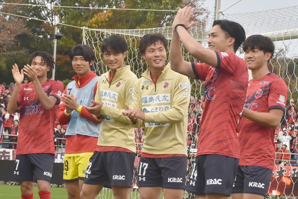 終了間際にペナルティーキック(PK)から1点を返されたが、今季初の4連勝を果たし、6位・ベガルタ仙台との勝ち点は6ポイント差に。残り3試合となる中、J1昇格プレーオフ圏内に迫りつつある。