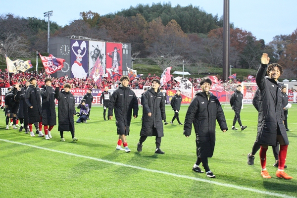 (写真:試合終了後にサポーターの声援に応える選手たち)