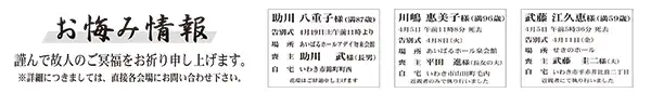 - 16日午前10時半よりJA葬祭ラポール四倉 ※花環は辞退