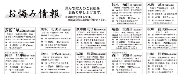 - 15日午前11時よりJA葬祭ラポール平(葬場祭)