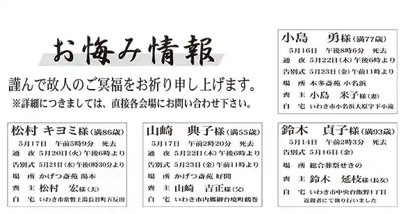 5月20日(お悔やみ情報)