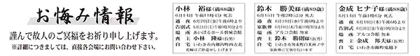 お悔やみ 6月18日(お悔やみ情報) 2025.06.19 Post この記事のタイトルとURLをコピーする こちらの情報は、各葬儀社からの提供です。 いわき市内 小林 裕さん(88歳)内郷内町四方北 21日あいぱるホール磐城会館 鈴木 勝美さん(89歳)勿来町白米林ノ中 19日アルコ会館勿来 金成ヒナ子さん(88歳)錦町鬼越下 20日錦町鬼越下 詳しくはこちら PR:全国各地から厳選した「旬の魚」を吟味しすべて「生」からお造りいたしております 6月17日(お悔やみ情報) 前の記事 6月19日(お悔やみ情報) 次の記事