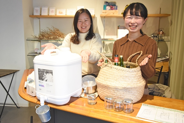 9日に今月の販売に立った正木さんは「安くても良いものを選べることを、多くの人に知ってもらいたい」と呼びかける。一般的に環境負荷の少ない商品は高価なことが多く、消費者は物価高騰もあってなかなか手を出しにくい現状にあるが、量り売りと詰め替えによってコストの削減につなげた。